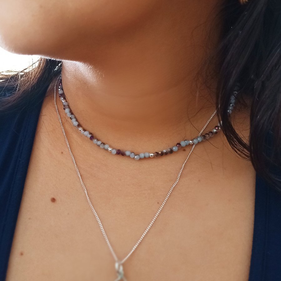 Choker en muranos tornasolados grises, billas y terminales en plata 925.