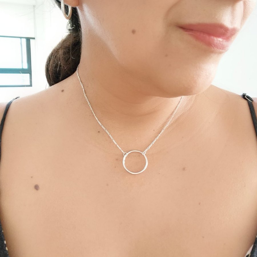 Dije circular en forma de aro en Plata 950 y collar en Plata 925